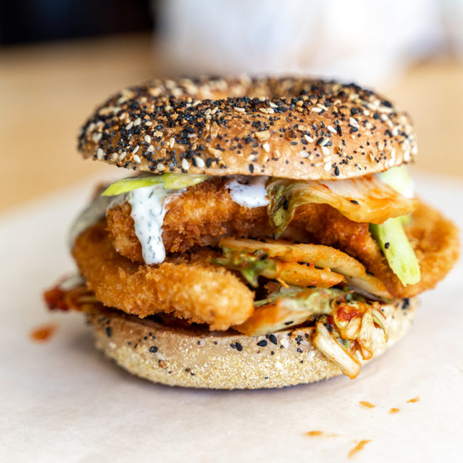 Nomad are a gourmet shop in the heart of North Park, serving artisanal donuts, bagels coffee, and more. The bagel meal in the image above is called “The Fadi”! They have unique combinations like Charred Blueberry Cream Cheese and Ube Taro Coconut.